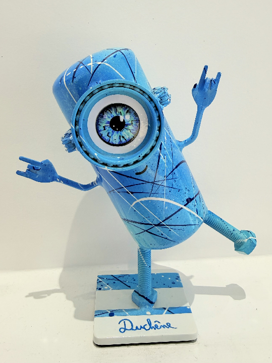 Sculpture en résine d'une glace blanche qui fond avec inscription "all you need is love", socle effet miroir