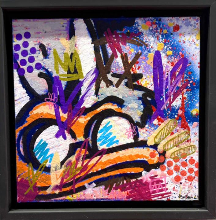 Peinture acrylique, papier, feutres et craies grasses sur planche en bois, représentation d'une carapace inspiré de l'univers de Mario