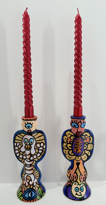 Véritable baguette de pain boulangère, traitée et peinte à la main dans un style abstrait et coloré.