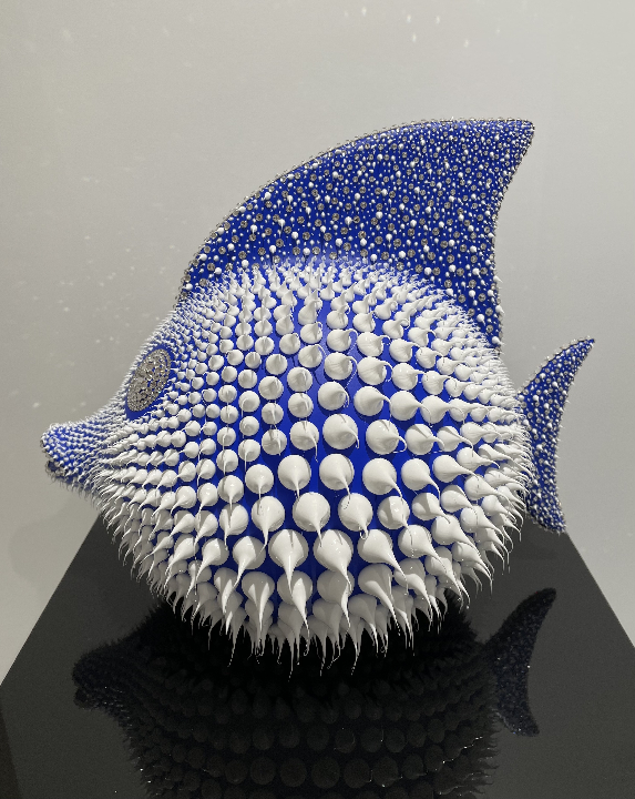 Sculpture d'un buste féminin peint dans les tons noirs mat, réalisé à partir de différents anneaux de cuivres mécano-soudés.